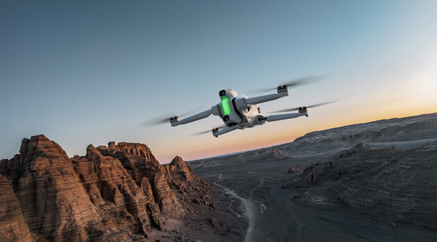 Test eseguiti a 25 °C in un ambiente controllato e senza vento, a 5,2K/30fps (registrazione video disattivata), con drone in volo in avanti a 6 m/s, altitudine inferiore a 50 m, fino all’attivazione dell’atterraggio automatico per batteria scarica. La durata effettiva del volo può variare in base alle condizioni operative.