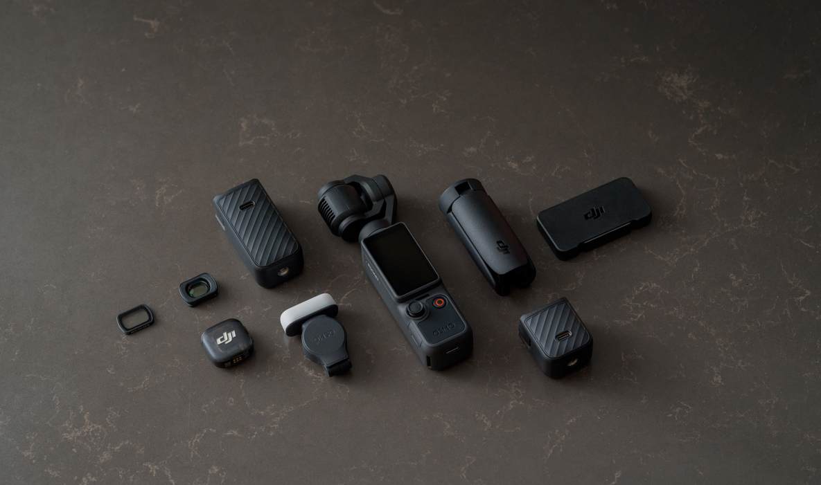 Osmo Pocket 4 viene fornita con una gamma di accessori versatili [13], che semplificano la creazione di contenuti con illuminazione equilibrata, colori vivaci e un suono chiaro. La luce di riempimento, l'impugnatura con batteria, i filtri ND, il filtro Black Mist e i microfoni senza fili offrono molteplici opzioni creative per risultati straordinari.